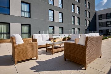 Terraza ajardinada que permite que los residentes disfruten del aire libre.